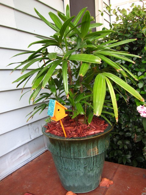 UPDATE – here is my lady palm in the green pot – gorgeous isn’t she???