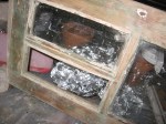 So I picked up yet more stuff to strip the paint off – So after giving me all kinds of good information of how to go about stripping the frames I ran over to Helm paint & picked up some Peel Away & later on pasted on the thick stuff – & covered it w/ the sheet it came with – here are pictures of how the frame looked before the pastey stuff .. and with the pastey stuff:.