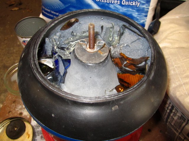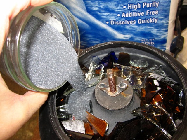 So I got a vibrating tumbler to create tumbled glass from my honey – & I figured I am trying to create a sea glass effect – so I could use sand & salt – so picked up some sand & pool salt & tried a couple of batches that way – I forgot however – how corrosive salt can be & my 2 wing nuts are rusted – so I should replace them – der!